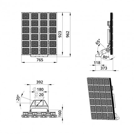 Габаритные размеры светильника, мм 962x765x373