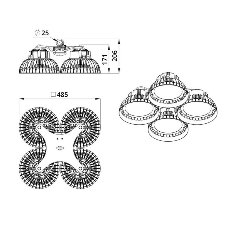 Габаритные размеры светильника, мм 485×453×205